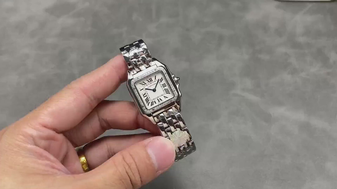 BV – Panthère Style Orta Boy 27×37 mm Bu model, zarif ve modern çizgileri bir araya getiren kare formdaki çift katmanlı kasasıyla dikkat çeker. Beyaz zemin üzerine yerleştirilen ikonik stilize rakamlar, tasarıma klasik bir görü...